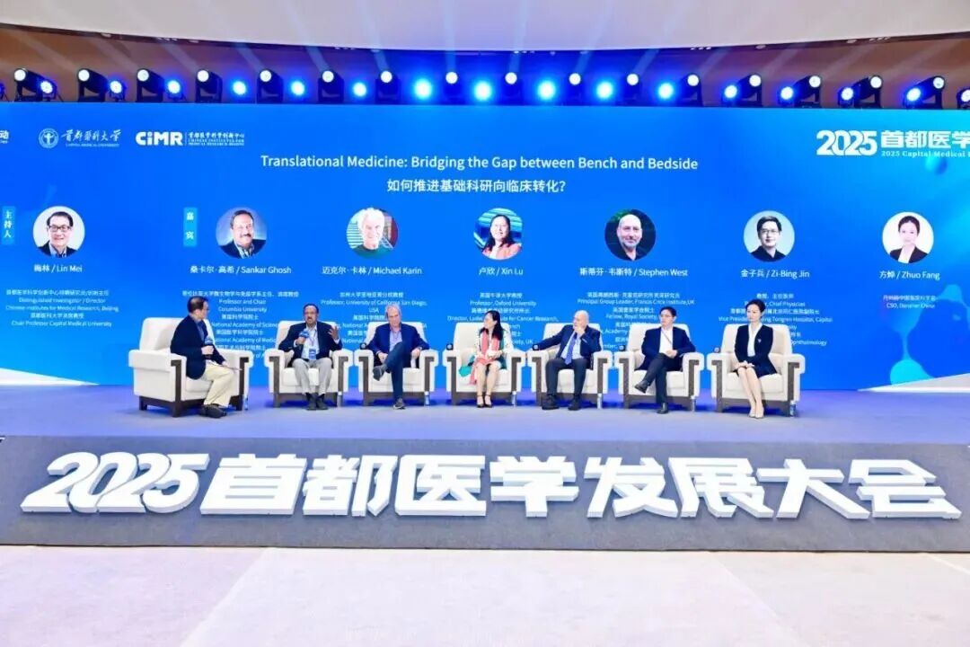 圓桌論壇環(huán)節(jié),由首都醫(yī)科大學(xué)講席教授,首都醫(yī)學(xué)科學(xué)創(chuàng)新中心特聘研究員、中心主任梅林主持,圍繞“如何推進(jìn)基礎(chǔ)科研向臨床轉(zhuǎn)化”展開深度對話。美國科學(xué)院院士桑卡爾?高希、英國皇家學(xué)會院士盧欣和斯蒂芬?韋斯特、首都醫(yī)科大學(xué)附屬北京同仁醫(yī)院副院長金子兵、丹納赫中國首席科學(xué)官方焯等中外專家,共同探討基礎(chǔ)研究與臨床應(yīng)用的銜接難點與突破方向,明晰轉(zhuǎn)化醫(yī)學(xué)發(fā)展路徑,也為產(chǎn)學(xué)研協(xié)同創(chuàng)新提供新思路。