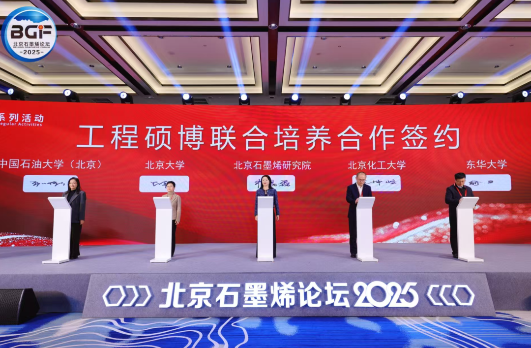 論壇期間,北京石墨烯研究院與北京大學(xué)、北京化工大學(xué)、中國(guó)石油大學(xué)(北京)、東華大學(xué)等高校簽署工程碩博士聯(lián)合培養(yǎng)協(xié)議,共同探索“產(chǎn)學(xué)研用”一體化的人才培養(yǎng)新模式。通過校企協(xié)同育人,將為企業(yè)持續(xù)輸送高素質(zhì)專業(yè)人才,為石墨烯產(chǎn)業(yè)長(zhǎng)遠(yuǎn)發(fā)展提供智力支持。