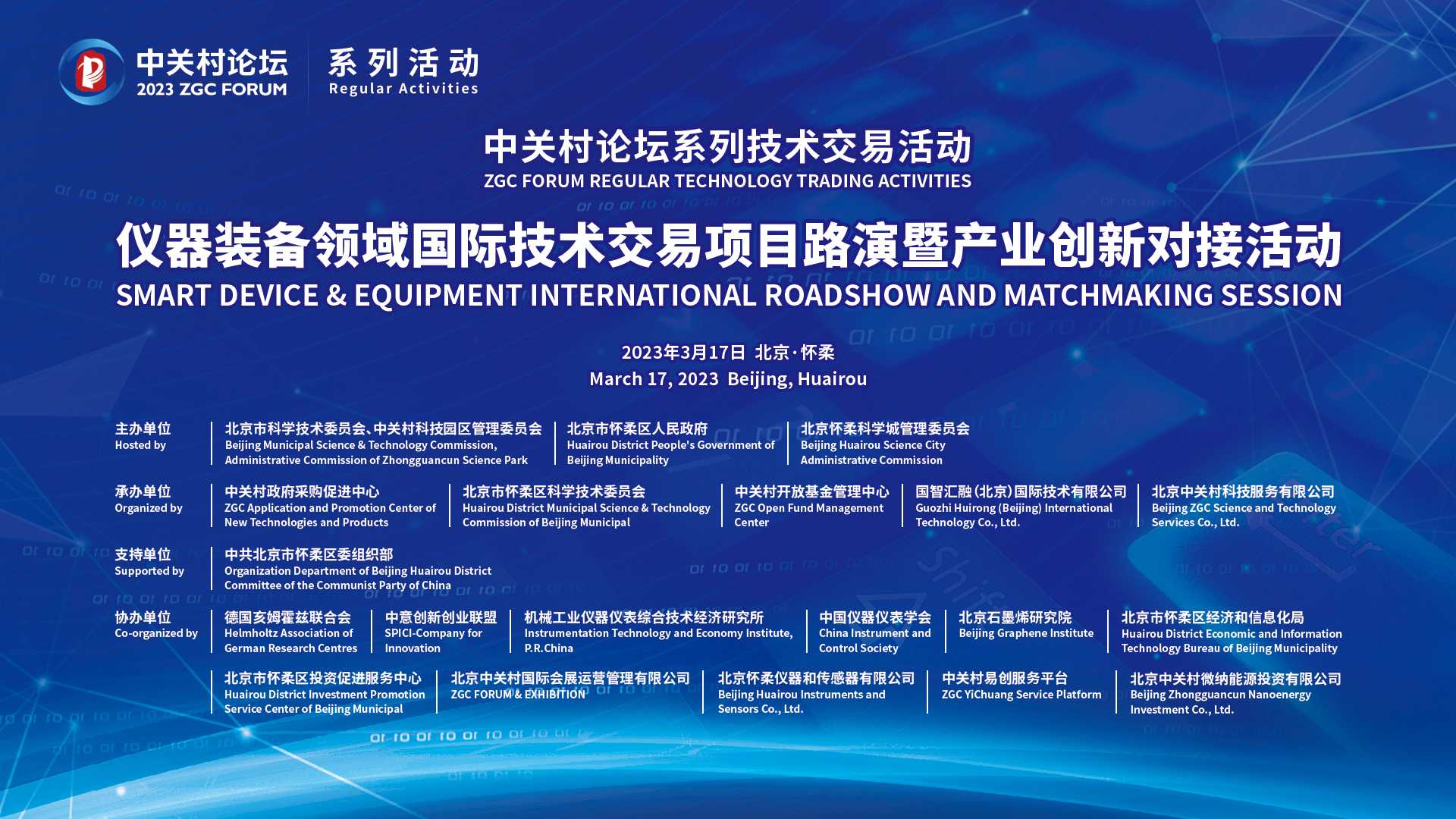 主辦單位:北京市科學(xué)技術(shù)委員會(huì)、中關(guān)村科技園區(qū)管理委員會(huì),北京市懷柔區(qū)人民政府,北京懷柔科學(xué)城管理委員會(huì)共同主辦。