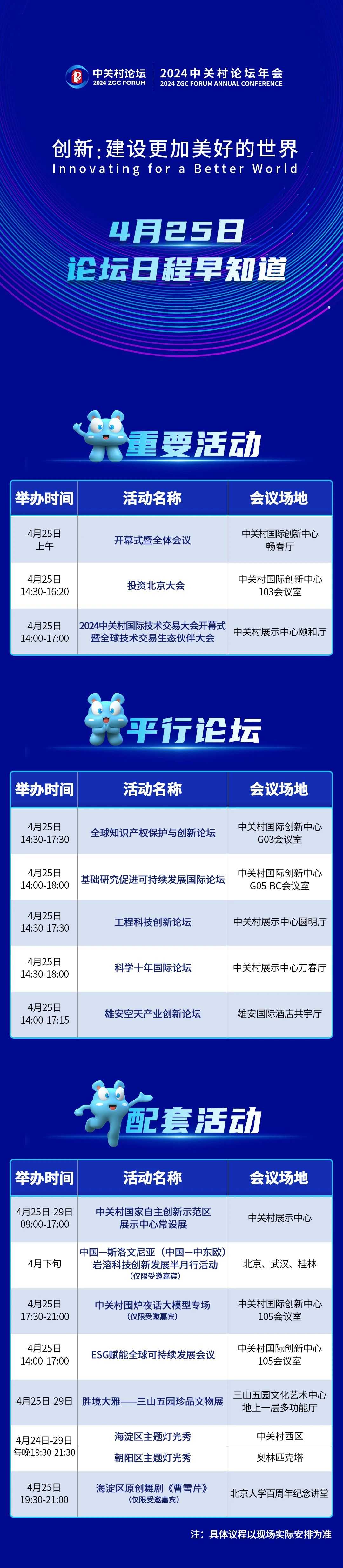 提前劇透!一圖了解4月25日中關(guān)村論壇年會日程!