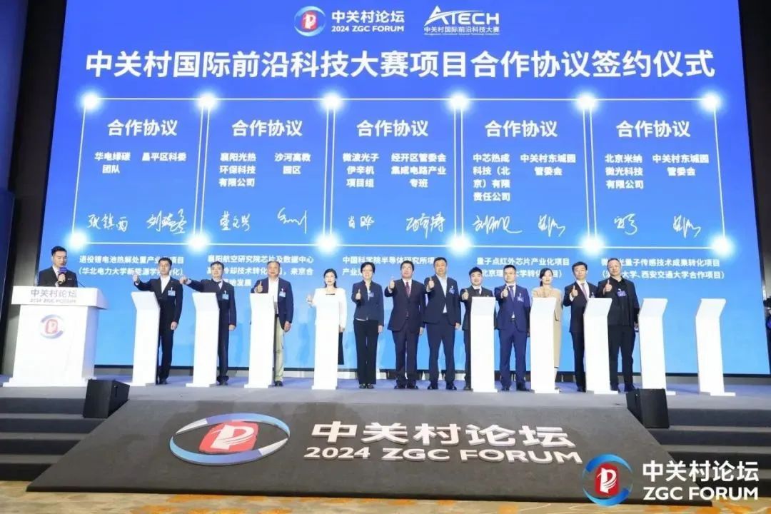 除了精彩的項目對決,本次活動還組織了大賽優(yōu)勝項目觀摩,邀請17家優(yōu)勝項目代表集中展示前沿硬科技新技術(shù)新產(chǎn)品;舉辦大賽優(yōu)勝項目合作協(xié)議簽約儀式,5家企業(yè)和團(tuán)隊、4個特色園區(qū)代表進(jìn)行現(xiàn)場簽約。大賽同時發(fā)布了10個領(lǐng)域的中關(guān)村國際前沿科技大賽TOP10企業(yè)并進(jìn)行頒獎。