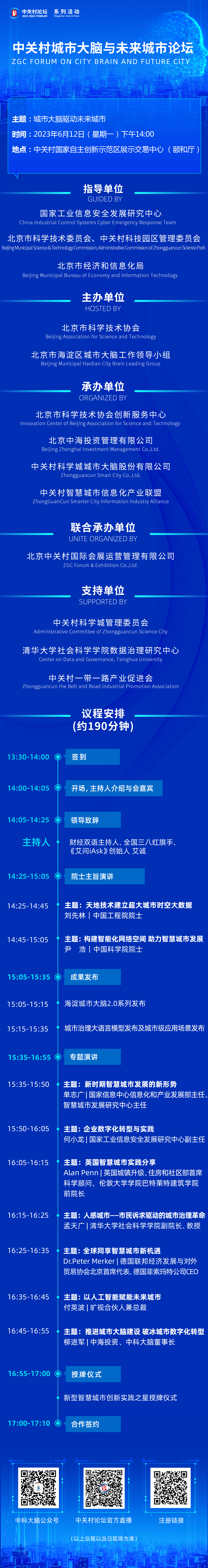2023中關(guān)村論壇系列活動——中關(guān)村城市大腦與未來城市論壇將于6月12日在中關(guān)村展示中心舉辦。