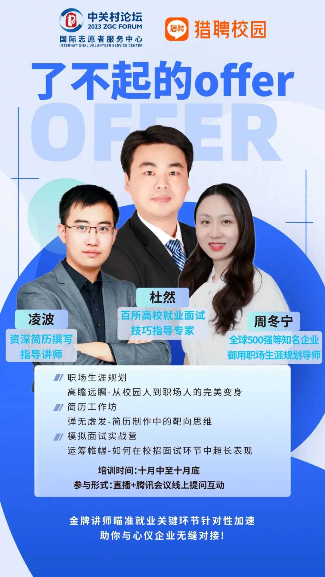 「了不起的offer」是由中關(guān)村論壇國際志愿者服務(wù)中心聯(lián)合十余所知名高校共同發(fā)起的青年成長計劃創(chuàng)新項目。系列活動獲得了高校、企業(yè)、媒體等多方的大力支持,也獲得了多家名企HR的點贊。