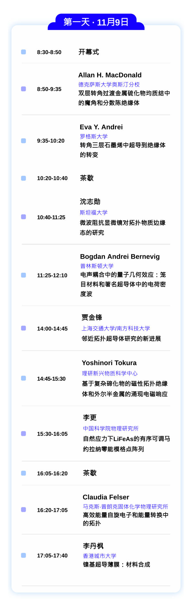 2023中關(guān)村論壇系列活動(dòng)——北京國(guó)際學(xué)術(shù)交流季拓?fù)湮镔|(zhì)中的磁性與超導(dǎo)國(guó)際學(xué)術(shù)會(huì)議將于11月9日開(kāi)幕。本次會(huì)議邀請(qǐng)來(lái)自美國(guó)、德國(guó)、日本的14位外籍專家及15位國(guó)內(nèi)專家學(xué)者,圍繞轉(zhuǎn)角材料中的拓?fù)渑c超導(dǎo)、拓?fù)涑瑢?dǎo)材料及其物性、籠目結(jié)構(gòu)材料的拓?fù)湮镄?、高溫超?dǎo)材料的拓?fù)湮镄?、低維體系中的量子現(xiàn)象等議題展開(kāi)交流與研討。